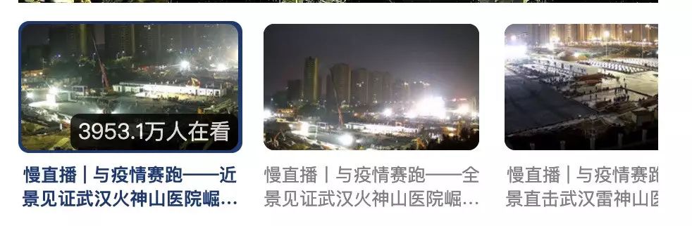 4000万闲疯帝在线监工 近期,雷神山、火神山两座医院的建造成为大家关注的焦点。相关单位也对两座医院的建造过程进行了现场直播。