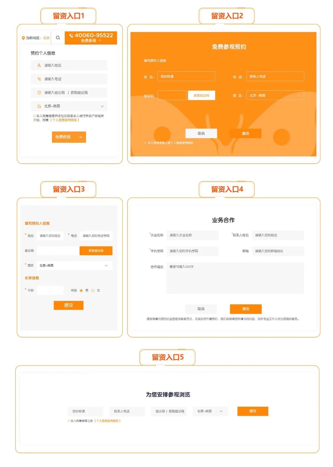 今年是泰康之家诞生的第27年,作为第一批社会化养老企业开路人,泰康之家一路过关斩将,业务规模发展至今,已经覆盖全国34个城市,客户突破20万人。官网作为泰康之家业务扩张的重要阵地,一路跟随品牌向高攀登,结下累累硕果。 然而“临近中年”,官网也面临着新时代消费者心智跃迁的适应性挑战,变革应运而生。  行业转型:以迭代应需求 科技化、智慧化互联网技术的引入,将中国养老产业带入了智慧养老阶段,这一代养老社区消费者也呈现出与过去截然不同的特征:不仅追求物质享受,也希望精神富足;不仅规划退休生活,也愿意为中年健康买单;不仅关注主流媒体评价,也考量网络口碑…… 新的消费需求催生新的高质量供给,高端养老社区、定制化养老服务日渐崛起,品牌也更倾向于以营销带动转化,在品效合一营销战略下,官网建设再次被提到突出位置。 纵观泰康之家官网现状,用户定位错位,内容失焦无重点,导致框架、视觉脱离实际使用需求、体验差、转化低,严重影响品牌声誉,难以达成有效转化。 万博思图一手规划的新版泰康之家官网,通过视觉、内容、转化全新机制,推动网站框架、视觉语言、转化逻辑升级,解决了养老行业网站搭建大而泛、营销失效难题。上线以来PV浏览量近千万,同比增长1148.72%,人均停留时间拉长18%,留资同比增长222%,成功突破营销瓶颈,打通获客循环,更构筑了未来高质量、大声量养老品牌官网的新方向。   痛点诊断:对症下药治根本 1.信息堆砌,内容重心失焦 泰康自身业务庞大,客户为了充分展示品牌实力,希望官网每个内容都看起来很重要,结果每个元素都分散了用户注意力,导致用户无所适从。试想一下,如果满屏都是差不多的画面,是不是和你上网时误入广告网站一样?  泰康之家的网页寸土寸金,不合理的空间利用问题也让客户困扰已久,但如何克制而有层次感地展现信息,同时又能放大营销效果,客户自身也没有明确思路。 2.缺乏落地,营销转化失效 原官网留资入口数量较少,仅在顶部、底部和社区详情页固定位置设置留资,用户产生留资欲望时还需要拖动鼠标四处找寻,这带来的又是一重机会流失。 要知道,今天的上网环境,已经完全不同于二十年前,大家有时间有耐心在一个不那么好用的东西上花费精力。大部分人在产生厌烦心理之后,轻则打消留资念头,重则关闭网页转投竞品。  而且社区作为核心页面,原入口较深,需要用户在查询区域后,手动点击对应社区进行跳转,步骤繁琐,流量逐级衰减之下,业务曝光量少,点击量较低。社区详情内容优劣直接和最后转化挂钩,原页面虽然内容丰富,但整体冗长缺乏整体感,让人看了后面忘了前面,完全被网页带着走,无法勾起用户的留资兴趣。 3.过渡适老,用户体验失衡 在页面视觉设计方面,原官网重点照顾老年群体,在适老化、接地气上下了苦功夫。页面以大字号、高对比为主要特征,虽然方便了老年人使用,但忽视了另一类关键用户——中年高净值人群的使用体验。 这类人群中有为父母挑选养老品牌的,也有寻求系统性健康管理服务的,还有上下游服务商求合作的。他们更习惯于简洁、高端的网站风格,过于强烈的视觉冲击,不仅会拉低他们对品牌的印象,还给信息获取上了强度,最终让网站起到劝退的反效果。   解决方案:搭建营销闭环 为解决上述问题,在消化完庞大的用户数据和品牌资料之后,结合对10+优质中外养老门户网站优劣分析,我们定下了官网改版四大关键动作,作为此次改版的核心环节。1.内容策划:重塑官网内容,平衡内容流量 要解决网站的三大痛点,同时满足客户对内容层次感、贴近养老行业的风格的要求。最核心的就是首页、导航栏和落地页的内容规划。①首页 首页,不仅是形象的体现,也是所有业务的入口点、用户的必经之路。作为最重要的模块,它的产品设计和运营,会对公司业务产生关键影响。 原官网首页由留资、社区筛选、服务、生活、活动五大内容构成,分别对应着首页的三大功能——客户沟通、创造营收,产品展示。而养老这样高客单价、高使用频次的服务,消费者核心关注的首先是品牌,其次才是产品、服务,但这部分内容在原首页中是缺失的,没有足够硬核品牌背书和实力展示,又如何真正让用户相信呢? 因此在修改架构时,首先考虑新增品牌实力指标、品牌理念矩阵,展示品牌强大的服务能力和体系化的业务覆盖。泰康之家居住着大量精英客户,他们的生活质量和精神面貌就是最好的代言人,在首页新增客户生活展示区进行种草,既能吸引注重社交圈的高净值客户,也能提高人们对品牌的信任度。  ②导航栏 对导航栏主要做了两步较大改动。一是将社区展示上提到一级页面,提升社区的曝光量并缩短用户的转化路径;二是新增「泰康居民」一级页面,展示积极健康新时代老人生活状态,潜在用户留下深刻印象。  ③落地页 最终影响转化成效的社区选择页面是此次改版重头戏,第一屏采用地图主视觉还原泰康之家遍布全国的业务网点,右侧以实力数据形式突出其资质老、客户多、范围广。  在点击对应园区后的二级页面,以满屏画面营造社区活力氛围,采用图片矩阵形式展示社区活动和细节卖点,用户无需多次滑动即可获取全部有效信息,页面末端增加活动轮播,兼顾用户其他兴趣,撬动更多转化机会。  最后,要真正解决信息过载问题,文案设计也是重中