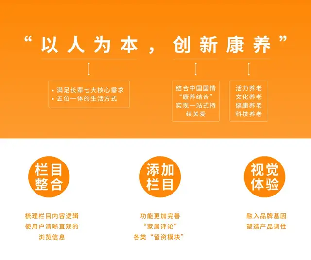 泰康之家网站设计一改“先设计再填充文案”的步骤,在架构形成之前就梳理出「泰康之家大战略」、「五位一体」核心价值,从品牌slogan、宣传资料中延伸出官网文案。