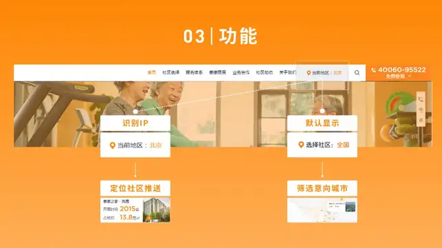 功能:社区页根据用户IP地址智能推荐附近社区,方便用户高效的触达所需内容,即时转化;