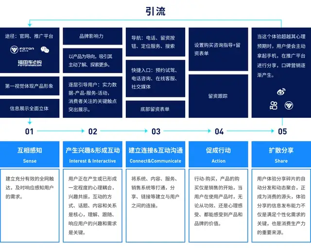 根据DCCI(互联网数据中心)曾提出的移动互联数字时代的SICAS行为消费模型,消费行为产生需要经过互相感知(sense)-产生兴趣&形成互动(interest&interactive)-建立链接&互动沟通(connect&communicate)-促成行动(action)-扩散分享(share)五个流程,其中,营销型官网在营销闭环中扮演着种草曝光、留资拔草的重要角色。